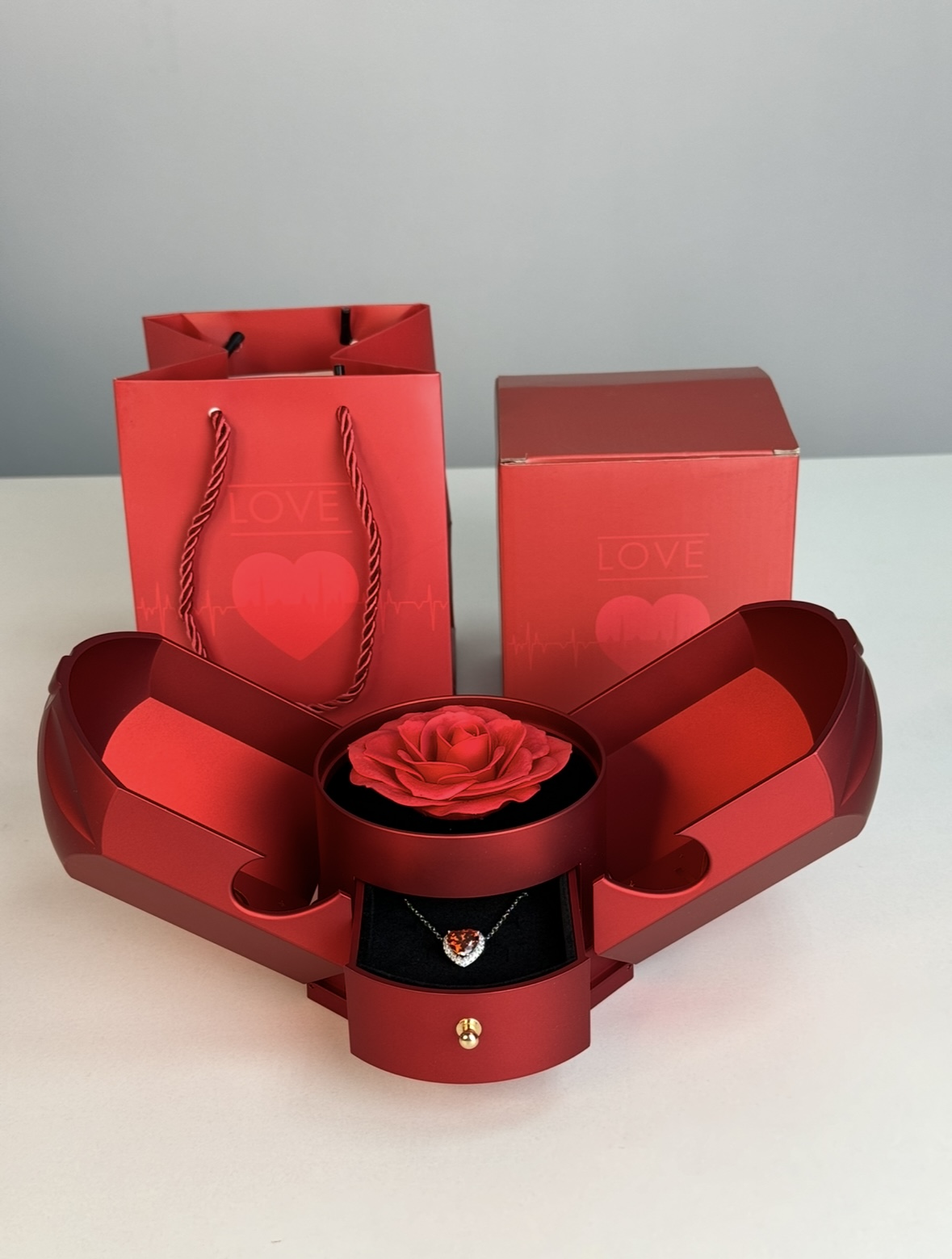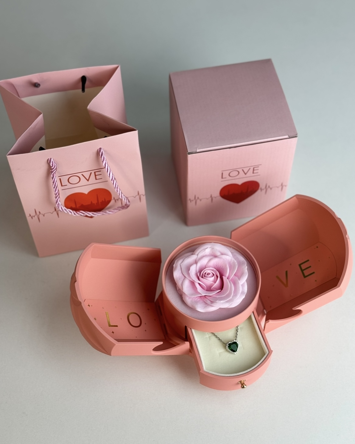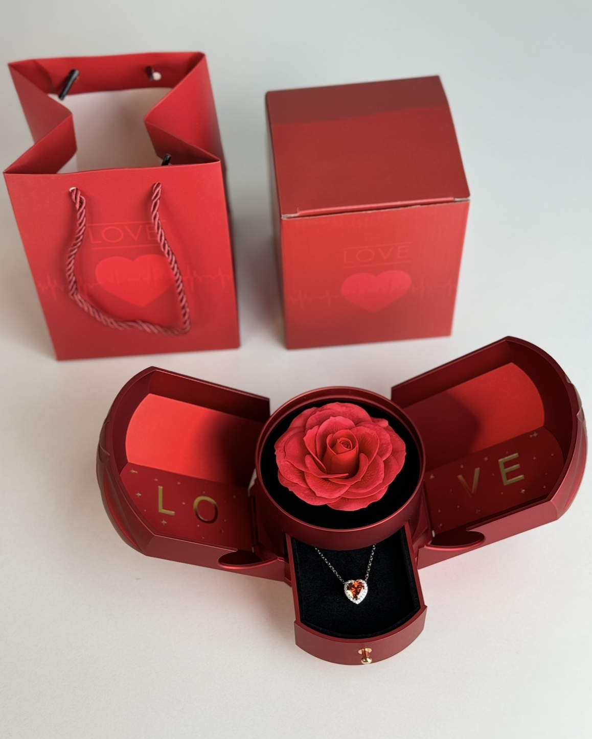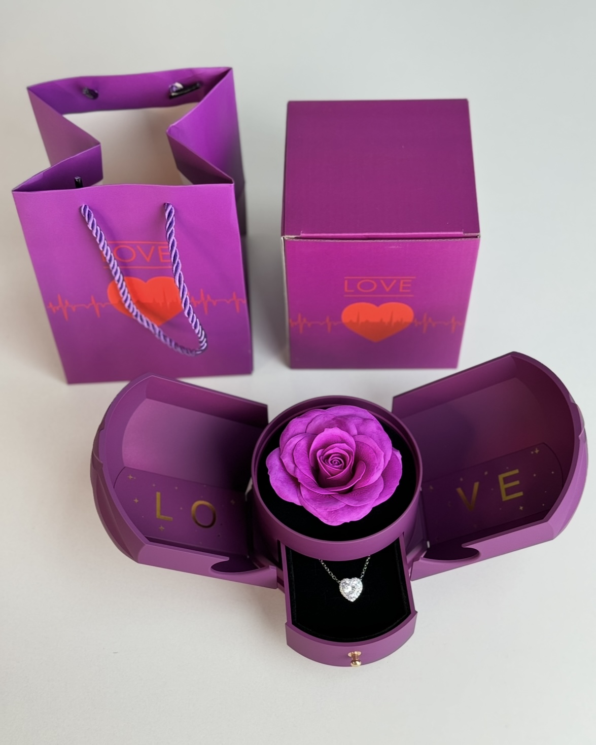 Але справжня магія починається тоді, коли вона знаходить висувну шухлядку з прикрасою. Усередині - вишуканий кулон у формі серця, який стане щоденним нагадуванням про ваші почуття.
