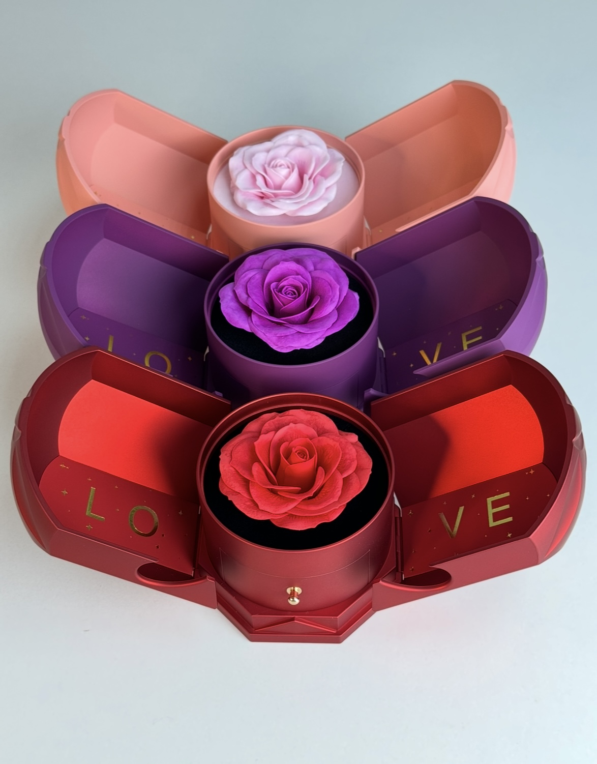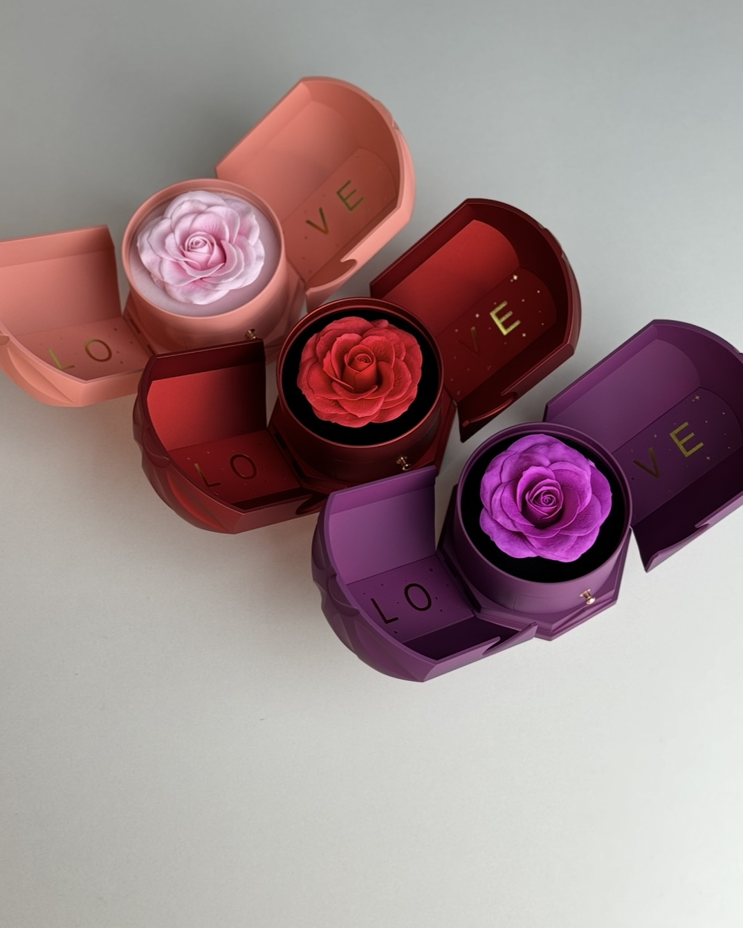 Перед її очима - елегантна коробочка "love", що розкривається мов казковий бутон. Усередині - троянда під скляним куполом, яка не в'яне та зберігає свою красу роками.