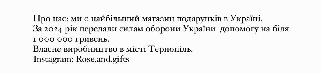 Дівчині подарунок сподобався, все дуже гарно зроблено, а саме головне швидке відправлення. Дякую за зроблену роботу🙏